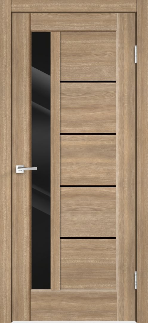 Дверное полотно Экошпон PREMIER 3 цвет Дуб Европейский стекло Лакобель черное