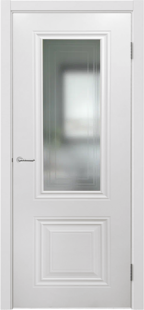 Дверь со стеклом Стелла 1 ДО белая эмаль стекло матовое с рисунком