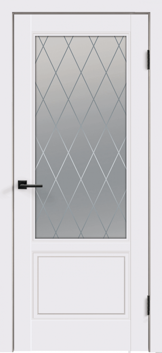 Дверное полотно Эмаль SCANDI 2V цвет Белый стекло РОМБ Мателюкс
