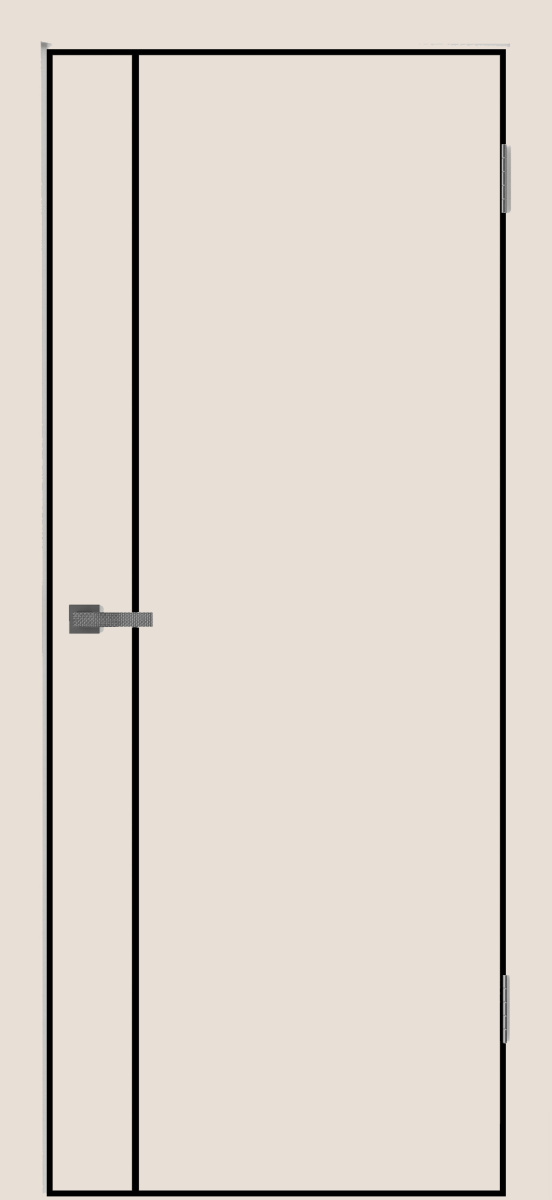 ПЭТ 5 - каркасно-щитовая дверь в современном гипоаллергенном покрытие ПЭТ (экошпон) с молдингом черного цвета. Матовая поверхность приятна на ощупь и визуально напоминает эмаль. По периметру полотна проходит черная алюминиевая кромка, усиливающая конструкцию и защищающая края. Толщина полотна: 38 мм. Вес: 22-32 кг. Магнитная защелка установлена в полотно и входит в стоимость.