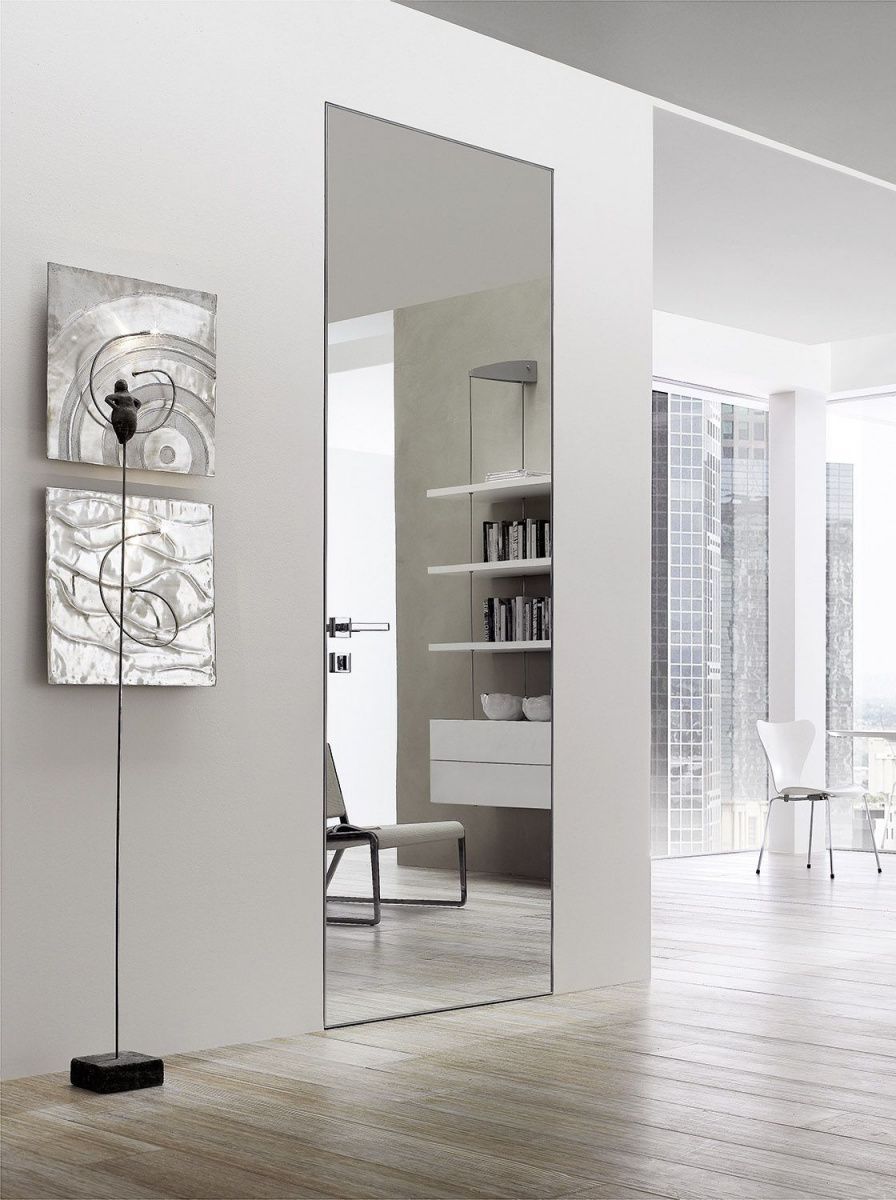 Дверь скрытая Hide SZ с вырезом под замок и скрытые петли - 3 шт. Толщина полотна 40 мм. Магнитный замок AGB MEDIANA POLARIS входит в стоимость двери. Дверная коробка алюминиевая с уплотнителем комплектуется тремя скрытыми петлями MORELLI HH-16 SC матовый хром.