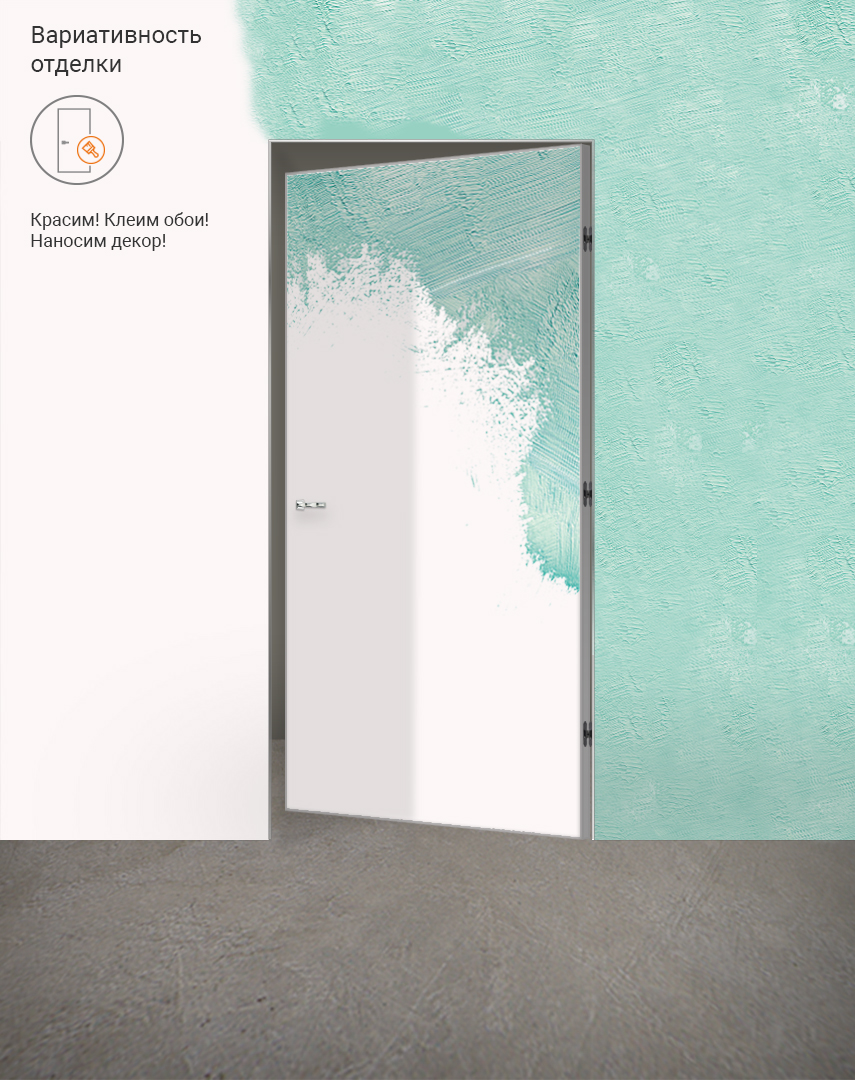 Инновационная система крепления дверных полотен в одной плоскости со стеной делает серию INVISIBLE универсальным решением для всех кто предпочитает, чтобы двери максимально сливались с интерьером. Такие двери-невидимки очень любят дизайнеры интерьеров за их лаконичность и возможность воплощать любые креативные идеи. Дверные полотна INVISIBLE можно красить , оклеивать обоями, покрывать декоративной штукатуркой. В комплекте поставки дверного блока уже идет итальянская дверная фурнитура (магнитный замок и скрытые петли), врезанная в заводских условиях. Полотна устанавливаются на сверхпрочный и надежный Алюминиевый короб замкнутого профиля. Полотна с притвором обратного прямого открывания при входе в помещение открываются "от себя"